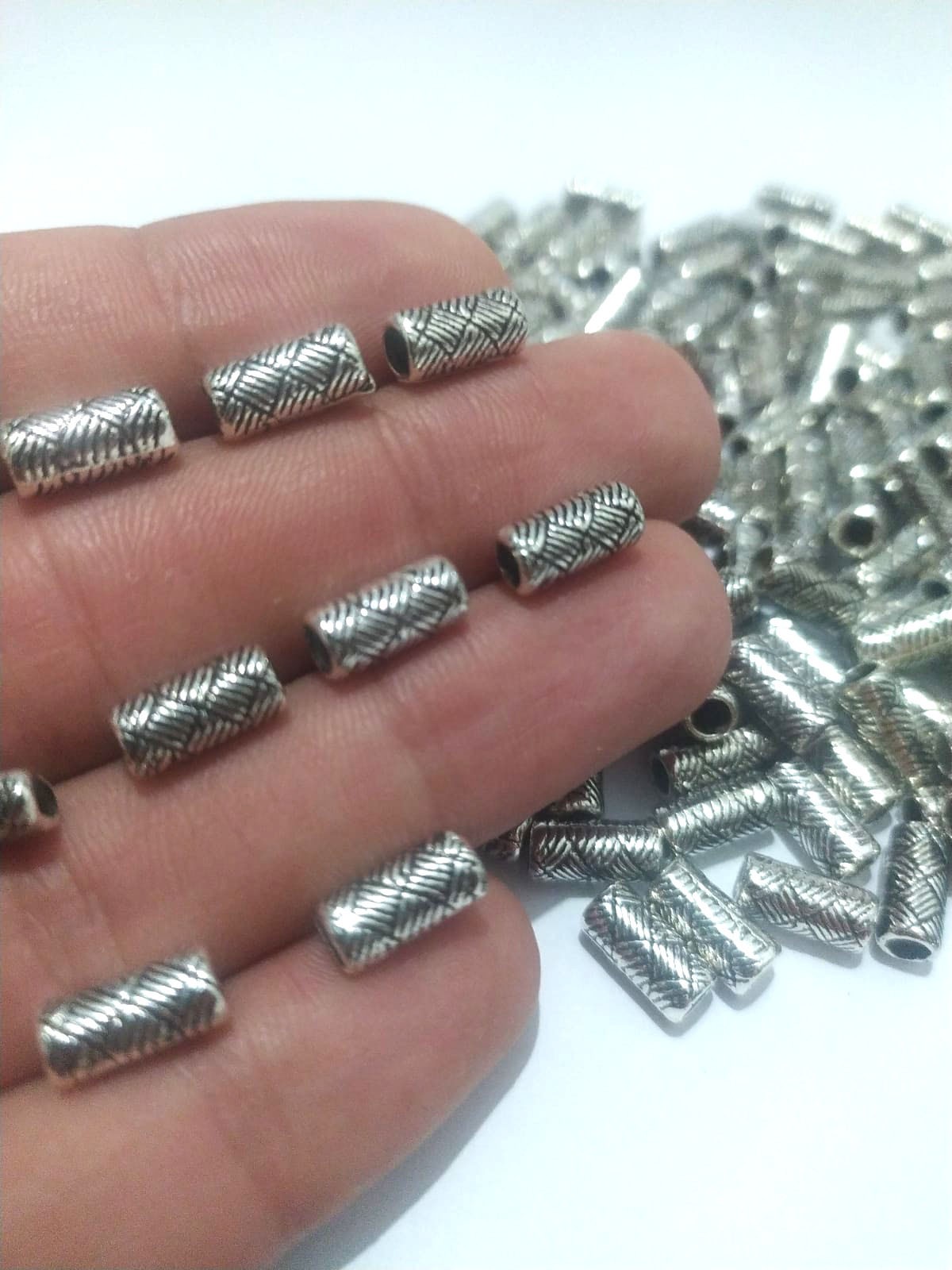 Takı Tespih Yapımı için 5 adet Silver Uzun Silindir Otantik Aparat Boncuk Kolye Bileklik Halhal
