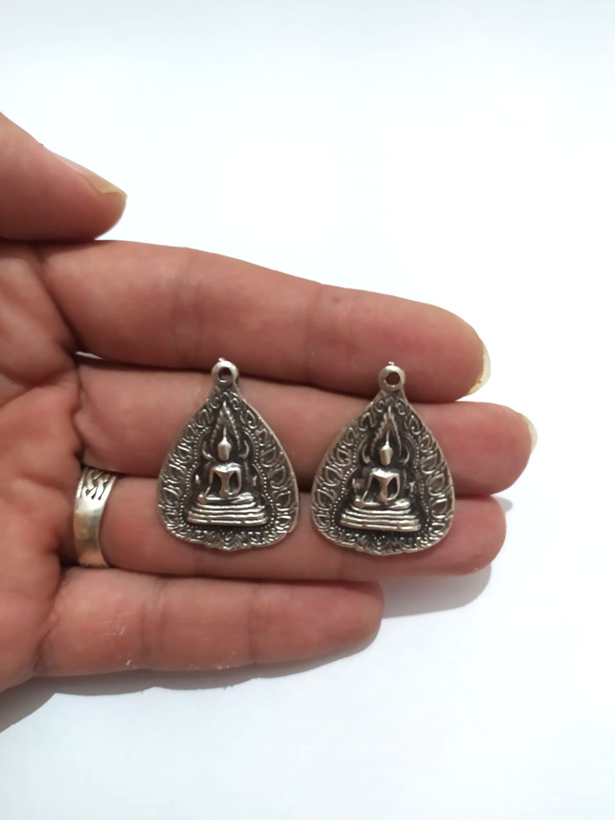Takı Yapımı için 2 Adet Alev Buda Gümüş Kaplama Kolye Bileklik Küpe Halhal Ucu